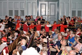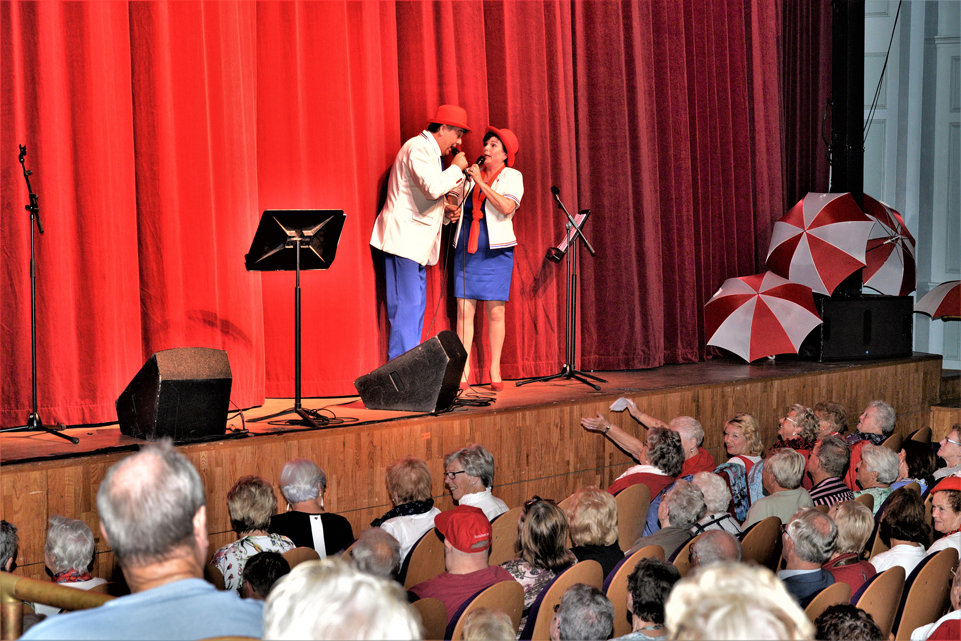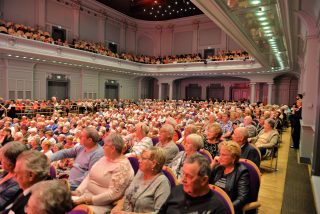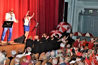 1000 Senioren genoten van Duo Jubeldaris en de Koos Mark Big Band bij de 3 oktober Seniorenmiddag in de Stadsgehoorzaal te Leiden. Voor de pauze trad het Volendamse duo Jubeldaris op. Hun vrolijke meezingers brachten de feeststemming er al snel in. Op de een of andere manier heeft Volendam patent op dit soort artiesten volgens mij. Dit vind ik nou mooi en zou zo in de strip “Liefde is…” passen. Liefde is… samen naar de 3 oktober Seniorenmiddag gaan!